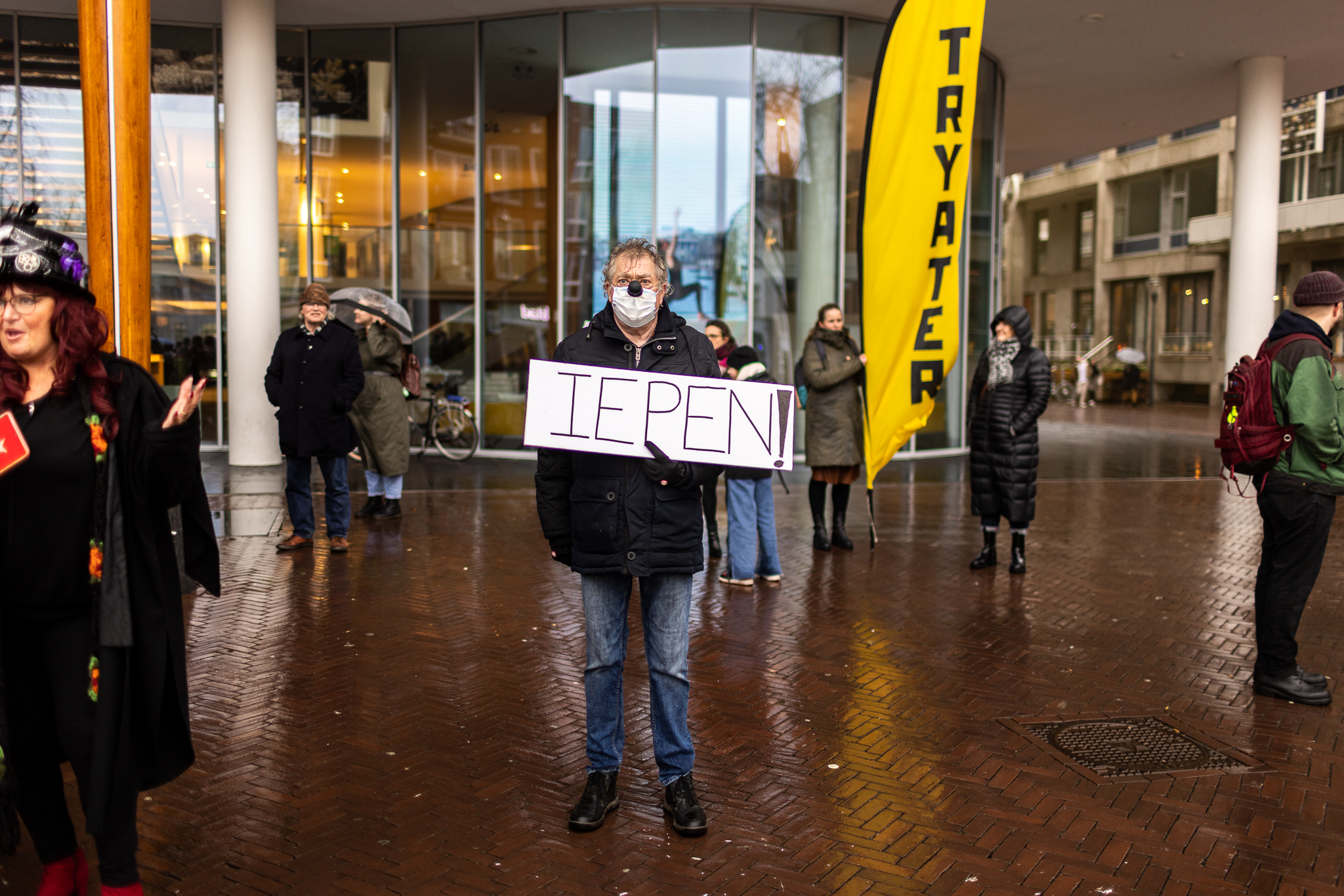 Woensdagmiddag 19 januari voerde Tryater – gesteund door andere culturele instellingen en liefhebbers – een vreedzaam protest naar en op het Wilhelminaplein. Het was een reactie op het verbod door de gemeente Leeuwarden van het oorspronkelijke plan: het aanhaken bij Kapsalon Theater.
